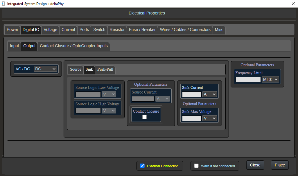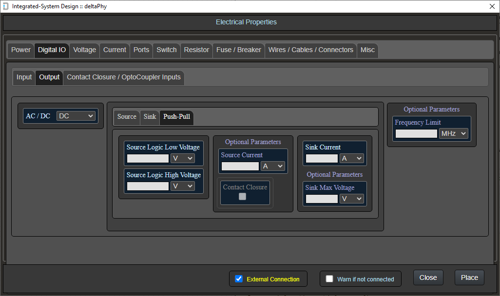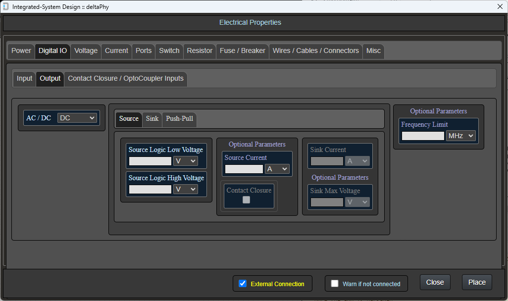 There is also an optional Frequency Limit which is taken into account by the Guidance System. In this context, if a digital output runs at for example the 1MHz range and this input has a 100kHz limit, then the guidance system will not show the two objects as compatible.
