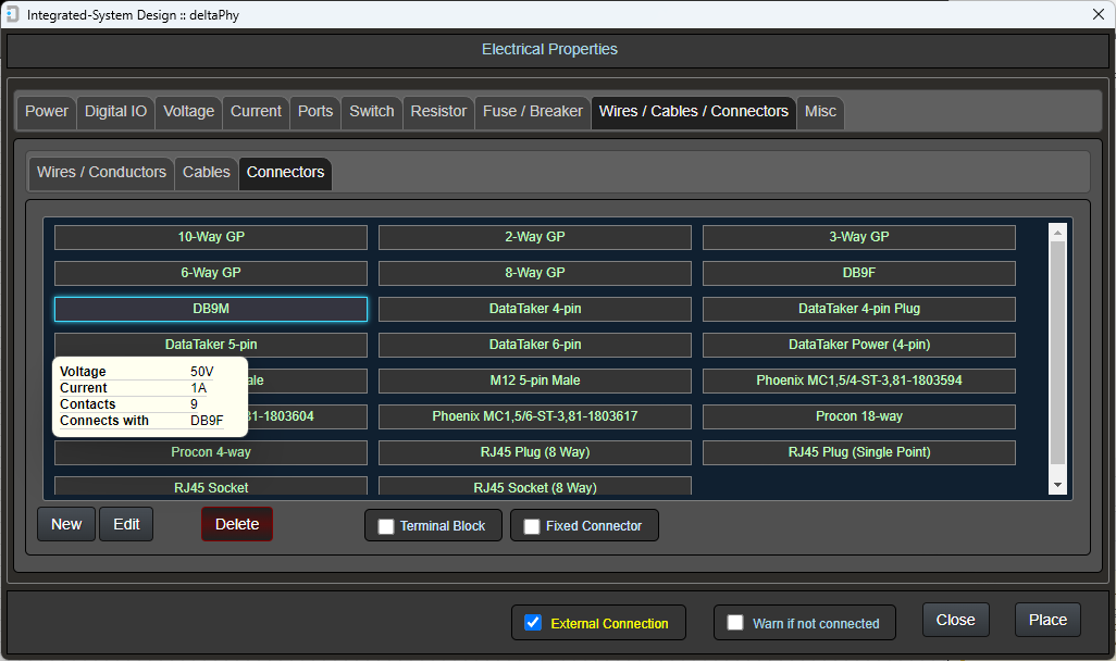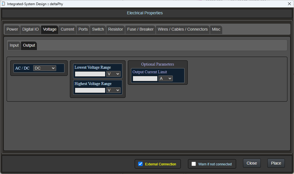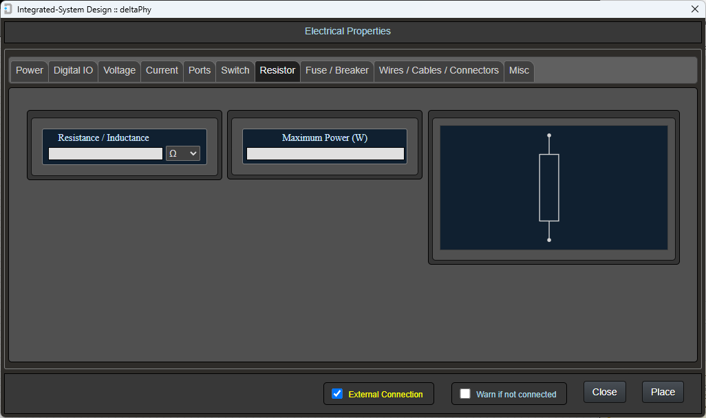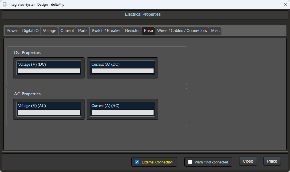 The External Connection is checked by default and configures the electrical object to be an 'external' type.