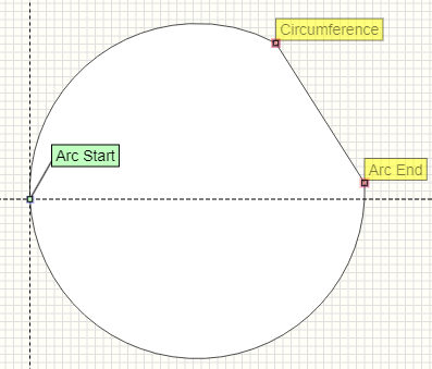 Arc placement is the same as curve placement except that the last point placed is a circumference point rather than an arc 'shape' point.