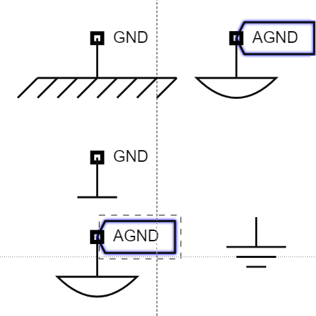 Hovering on the AGND label highlights all other labels with the tag 'AGND' but not labels with the 'GND' tag.