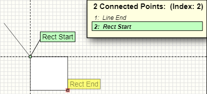 In this image of a line and rectangle object, the line end-point is overlapped with the rectangle start-point.
